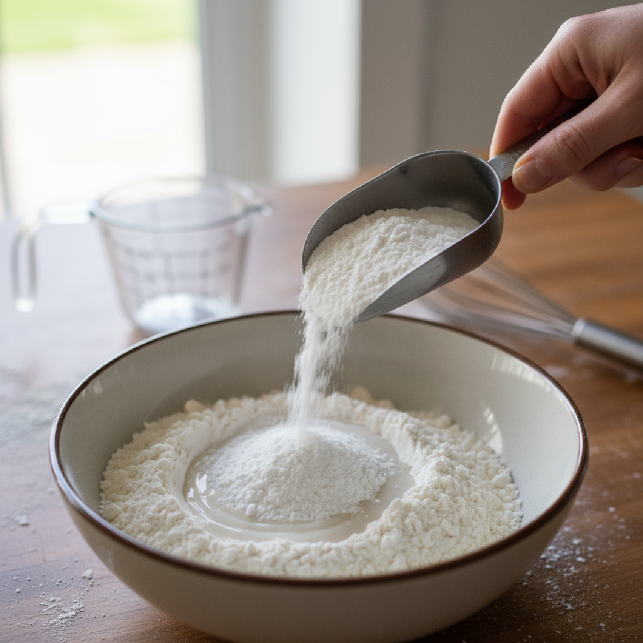 Whisk flour, baking powder, and protein powder together.