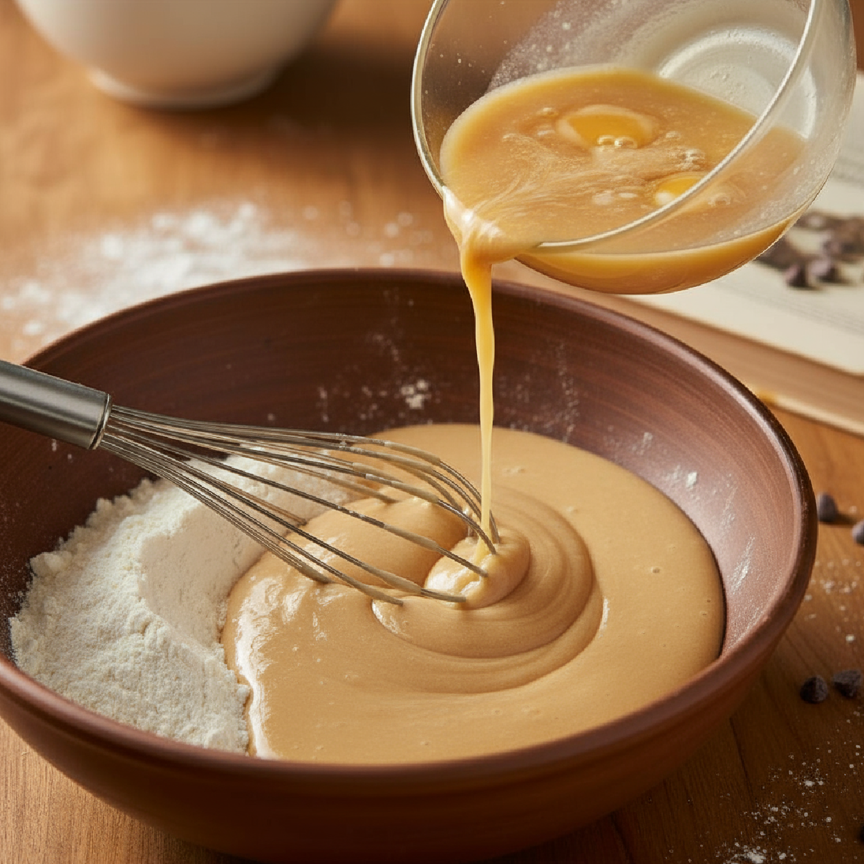 Combine wet and dry ingredients until batter forms.