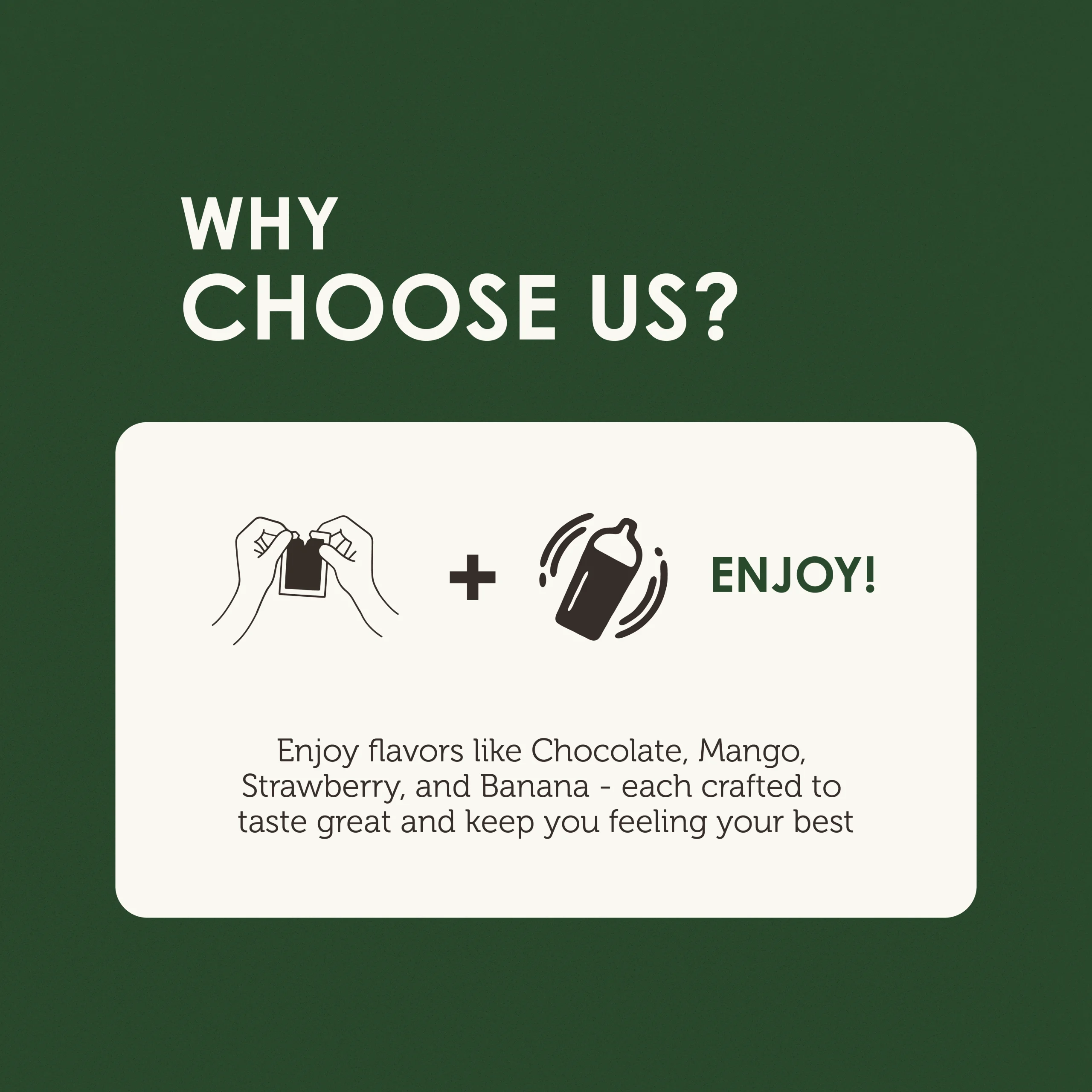 Fuel your day with the ultimate flavor lineup! Our Kick Start Pack brings you four irresistible flavors: Chocofuel, Mangolicious, Crunchberry, and Bananaboost – each packed with energy to power your adventures